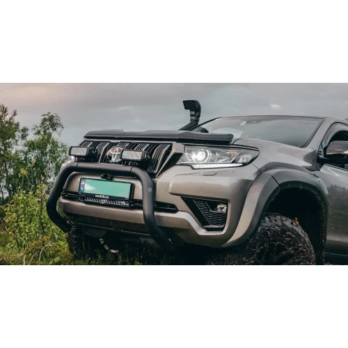 Det är några tillbehör som varje SUV måste ha och en frontbåge med extraljus är en av dem. Vi levererar EU-godkända frontbågar. Bågen är tillverkad av rostfritt stålrör som följer bilens front och monteras enkelt med fästen på bilens ram.