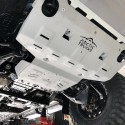 RIVAL hasplåtar är ett högkvalitativt underredesskydd tillverkat i 6 mm tjock, laserskuren aluminiumlegering – starkt, lätt och byggt för att tåla riktigt tuff terräng. Med djuppressad konstruktion och förstärkningsribbor erbjuder de optimal styvhet och slitstyrka utan att påverka bilens markfrigång.