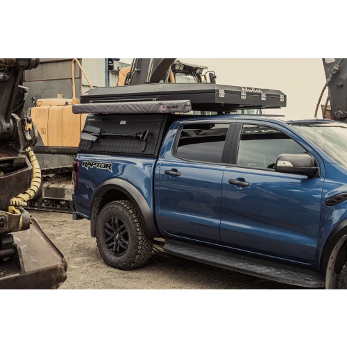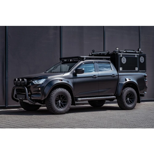 Den här hårdtoppen är tillverkad av 2 mm aluminiumprofiler med 1,5 mm tjocka sidoväggar med släta sidor. Bakluckan på Adventure 3-modellerna är smalare för att kunna montera stege och/eller jerrykannhållare bak på taket. Alla fogar är helssvetsade, vilket ger dig receptet på en riktigt tuff canopy.